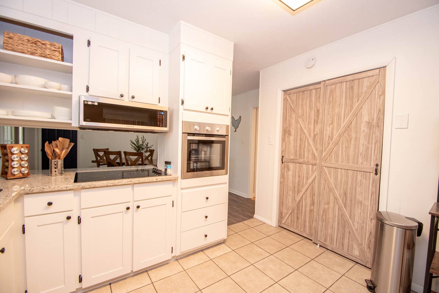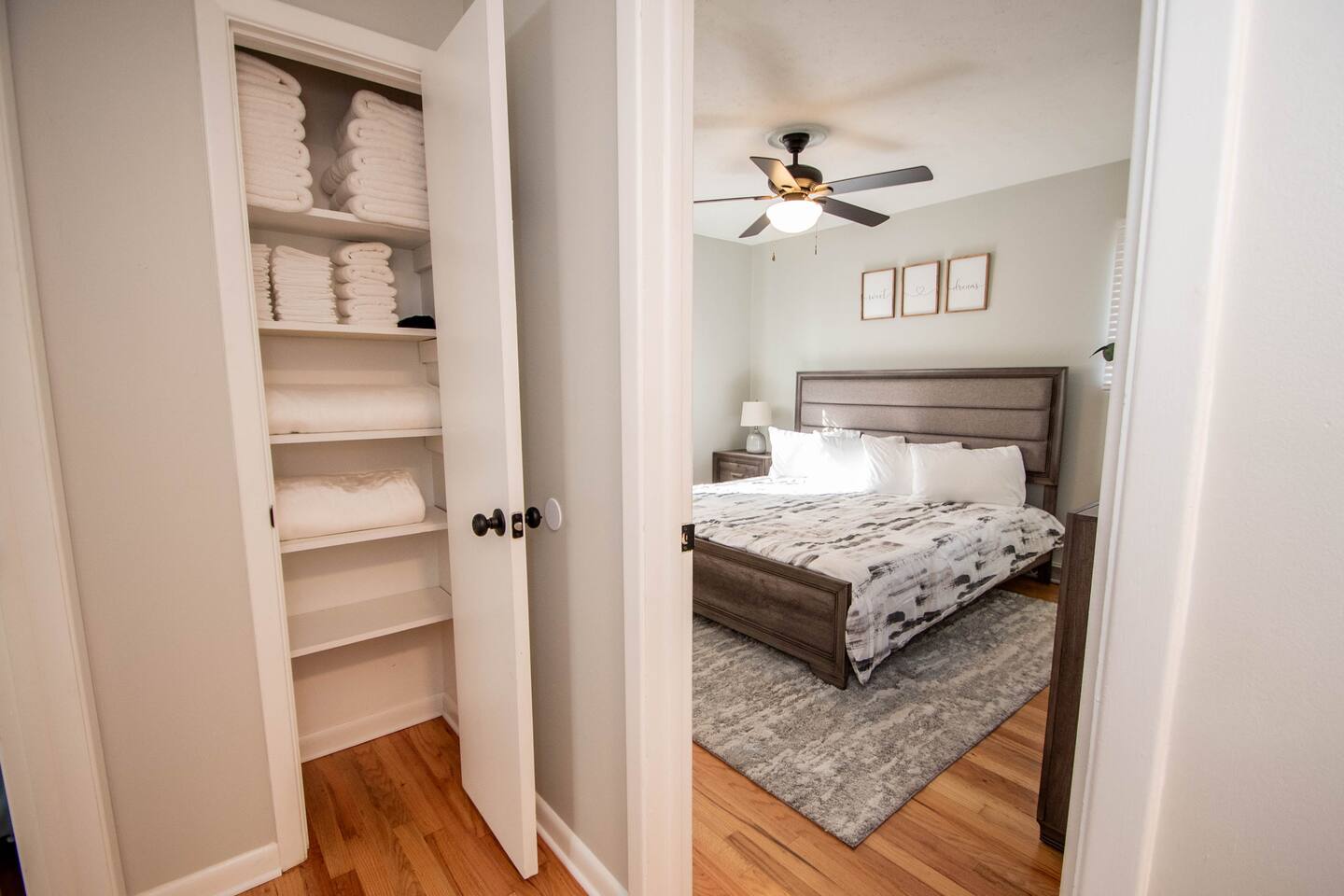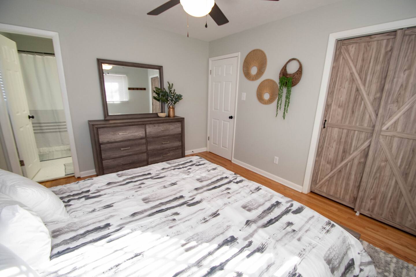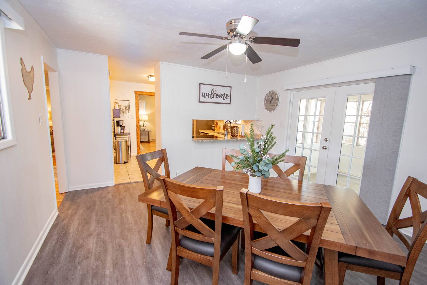 The master bedroom features a king-size bed and en suite bathroom, offering comfort and privacy. Enjoy the rustic ambiance throughout, complemented by family-friendly amenities. With a spacious covered carport and a large gravel parking area, you will have plenty of convenient parking. The Ridgedale Farmhouse is located in a quiet, family-friendly neighborhood so you can be assured of a quiet, relaxing atmosphere. This space is sure to be your ideal home away from home during your stay in Warner Robins. Book now for a perfect blend of convenience and comfort.